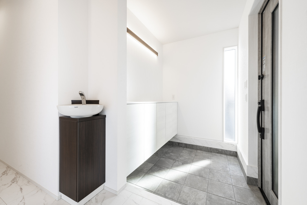 Ua値0.46以下・C値0.5以下を実現した高断熱・高気密住宅に、地震の揺れを抑える制震ダンパーMIRAIEを標準搭載。さらに、建物20年・地盤20年・設備10年の長期保証付きで、将来まで安心してお住まいいただけます。
