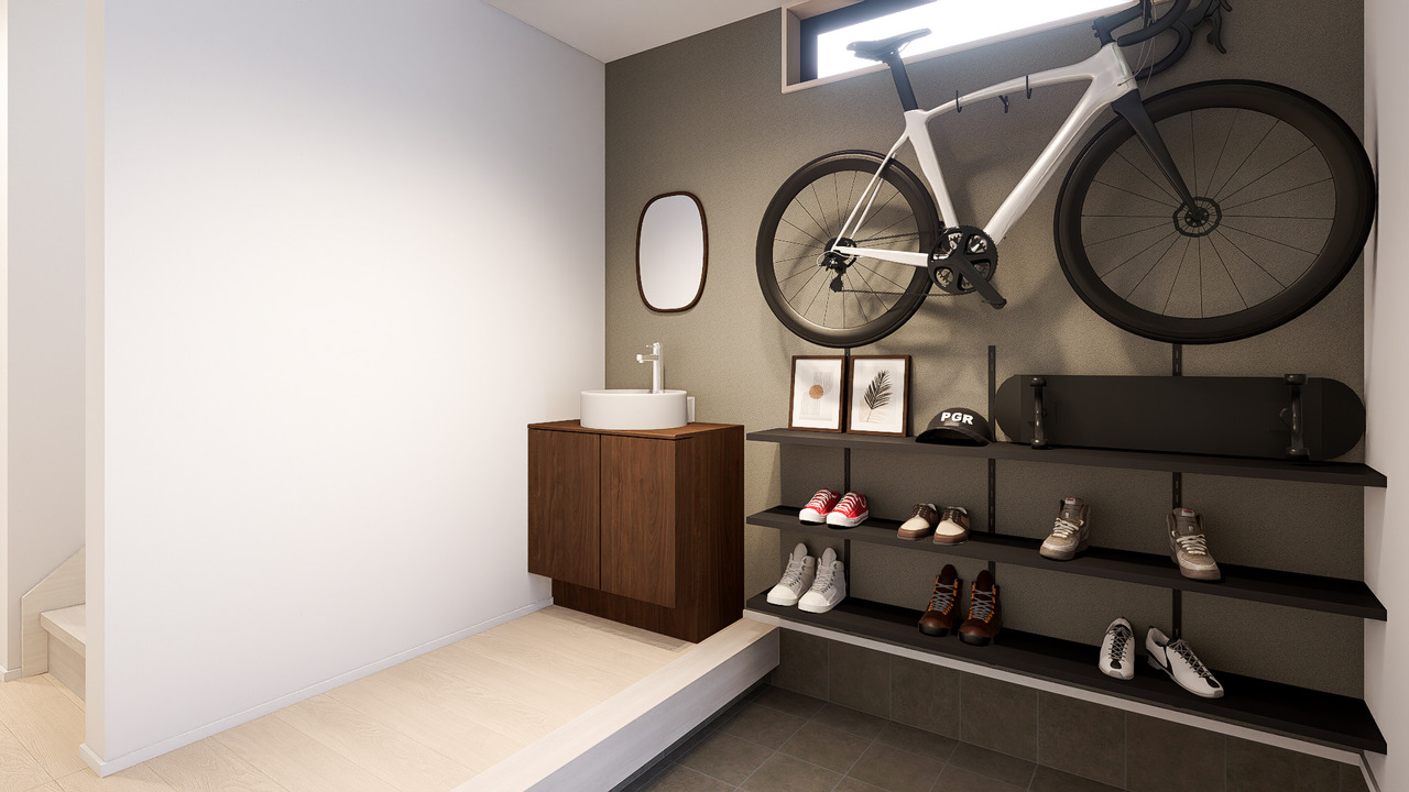 玄関ホールは、家の印象を決める最初の空間です。帰宅後まず目にする場所として、シンプルながらも機能的な収納が整えられ、スタイリッシュで清潔感あふれるデザインが施されています。また玄関脇の洗面コーナーの設置も手洗いの習慣ができ、安心です。