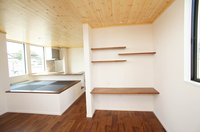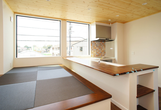 ホームナチュラルモダン 施工事例ナチュラルモダン3 ナチュラルモダン 施工事例 2019年5月18日 ナチュラルモダン3 開放感たっぷりの屋上のある家。 ちょっとしたテントを張って、屋上でキャンプを楽しんだり、 バーベキューを楽しんだりできそうです。 壁面をクロスで飾った遊び心のある対面キッチン。対面L型キッチンは、家事の効率化をはかれるので、テキパキと作業がこなせます! キッチン脇に小上がりの畳コーナーが設置されています。ちょっとしたちゃぶ台を置いてゆったりとくつろげる場所に! 開放的な屋上空間。ちょっとしたテーブルやイスを置いて、夏の夜のバーベキューパーティなども楽しめます♪ リビングの一角にカウンターコーナーを設置。お子様が宿題をしたり、奥様が家事の合間にタブレットやスマートフォンをする場所としても活躍! 完全自由設計対応のエドケンハウス注文住宅はこちら お問い合わせ・資料請求(無料)