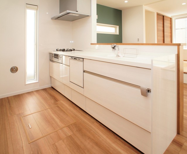 家族で会話が楽しみながら作業できる対面キッチン。お子様と一緒にお菓子を作ったり、ご主人の男の料理の手伝いをしたりと、家族で