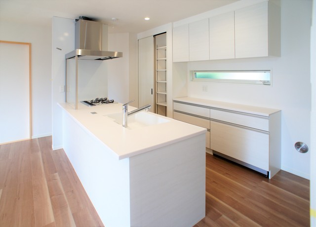 空間を広々と開放的に使ったお住まい。LDKも明るく、心地のよい空間。洗面室もサンルームのようにゆったりとしており、作業がしやすい場所になっています。