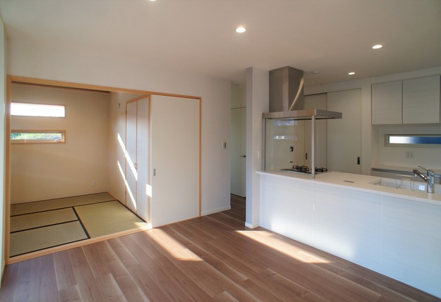 LDK脇の和室スペース。来客時に使用できるだけでなく、お子様のお昼寝の場所やアイロンがけ、お洗濯物を畳むなどの家事室としても便利。