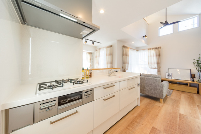 会話が弾む対面キッチン。ご主人の「男の料理」を奥様が手伝ったり、お子様と一緒にお菓子作りを楽しんだりと家族で楽しめます。