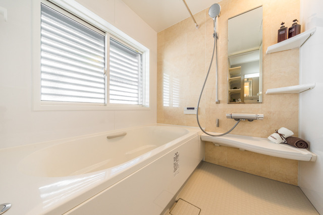 1日の疲れを癒すユニットバス。お掃除などのお手入れもラクラク。浴室乾燥暖房機も設置されているので、雨の日のお洗濯物も安心です。