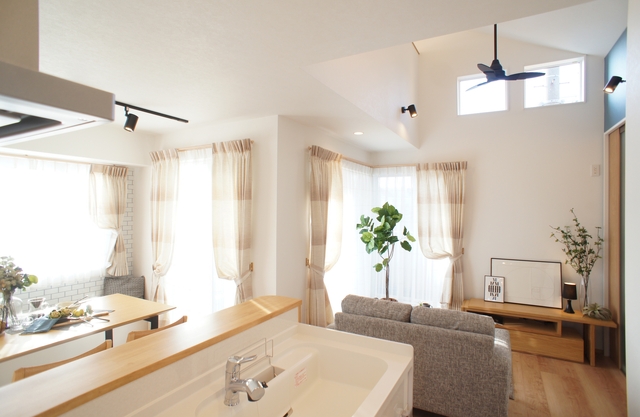 上部が開放的な吹き抜けの2階LDK。心地のよい空間は家族のくつろぎの場所です。