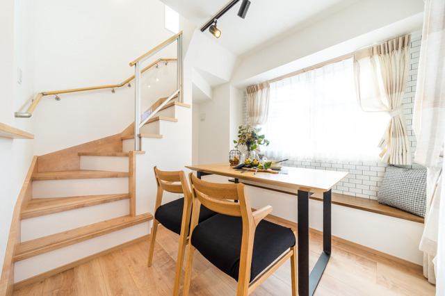 階段脇にベンチウィンドーを設置。奥様が家事の合間に読書やスマートフォンやタブレットで「今日のレシピ」をする場所としても活躍♪