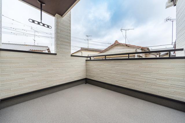 広々と開放的なバルコニー。洗濯物やお布団を干す場所としてだけでなく、家族でバーベキューなども楽しめそうです。