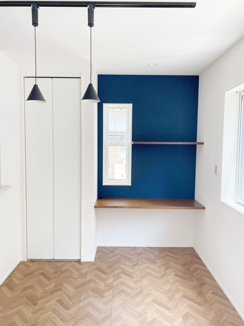 LDKに設置されたカウンター。お子様が今日の宿題やお絵かきをしたり、奥様が今日のレシピをPCやタブレットで検索する場所として活躍!