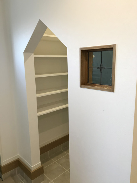 入口が家のカタチになっている遊び心のあるSIC。ステンドグラスがアンティークな雰囲気を演出しています。