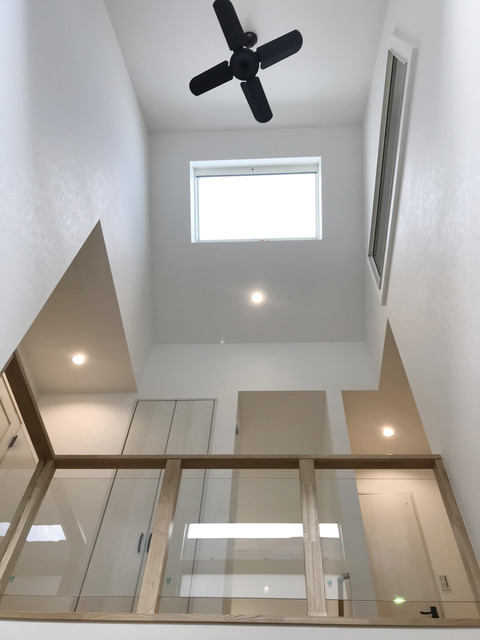 上部が開放的な吹き抜け空間。空の一部を切り取ったようなトップライトも設置され、明るい太陽の日差しが降り注ぐ気持ちの良い場所です。