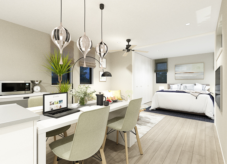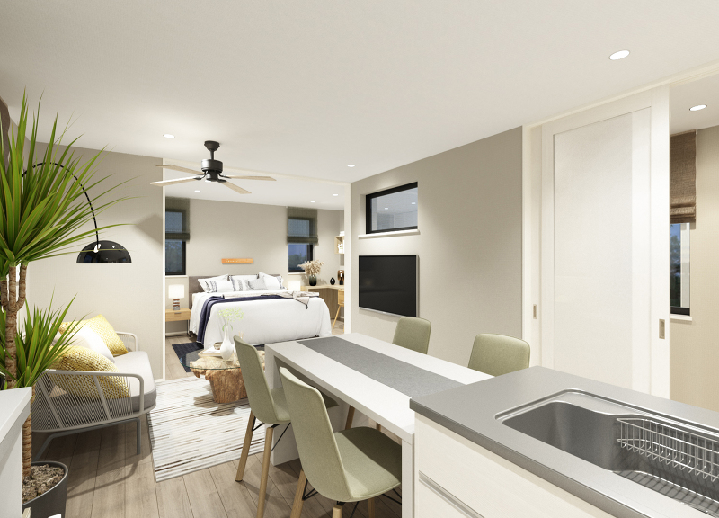 ひとりで趣味にひたる空間、ふたりでミニマルに過ごす空間、仕事に没頭するSOHO空間。生活感をそぎ落とし、とびきりの物しか置かないミニマリストの生活が、本当の豊かさに導いてくれます。船室・機内という意味のCABINは、アムステルダムの運河に浮かぶボートハウスから着想を得ました。情報や物があふれる時代のだからこそたどり着いた新しい家のかたちです。
