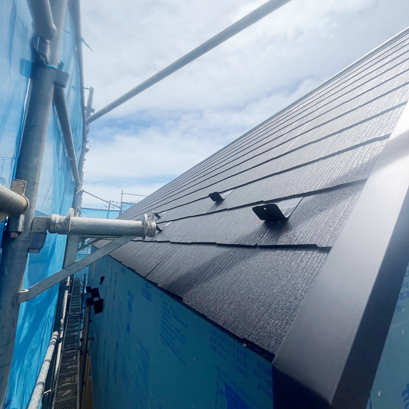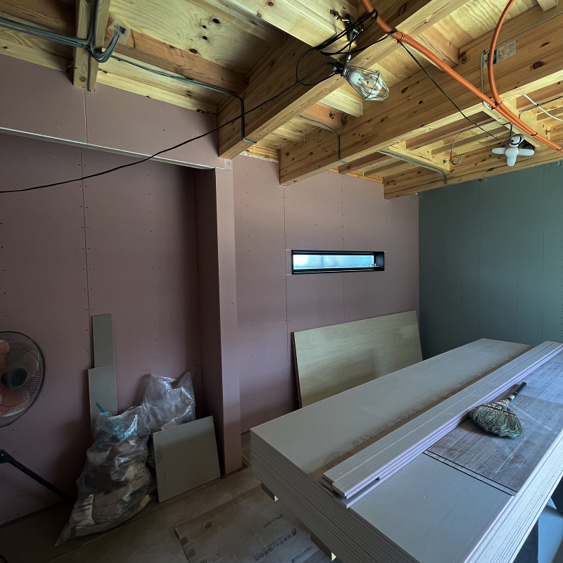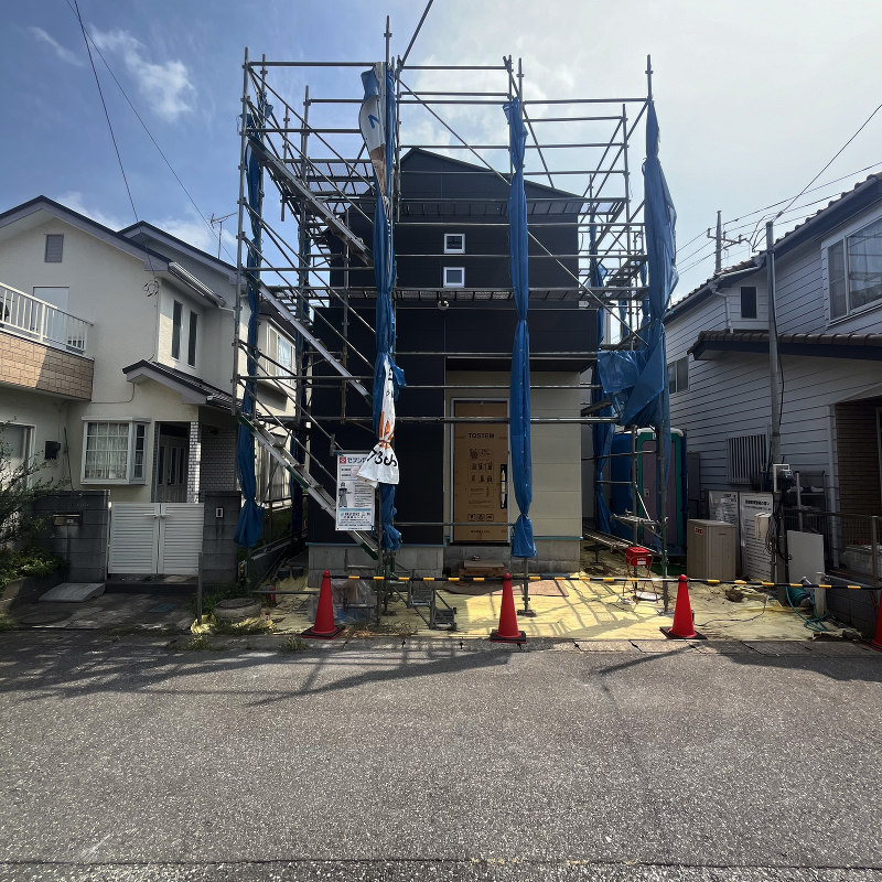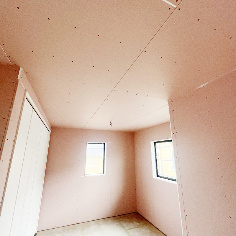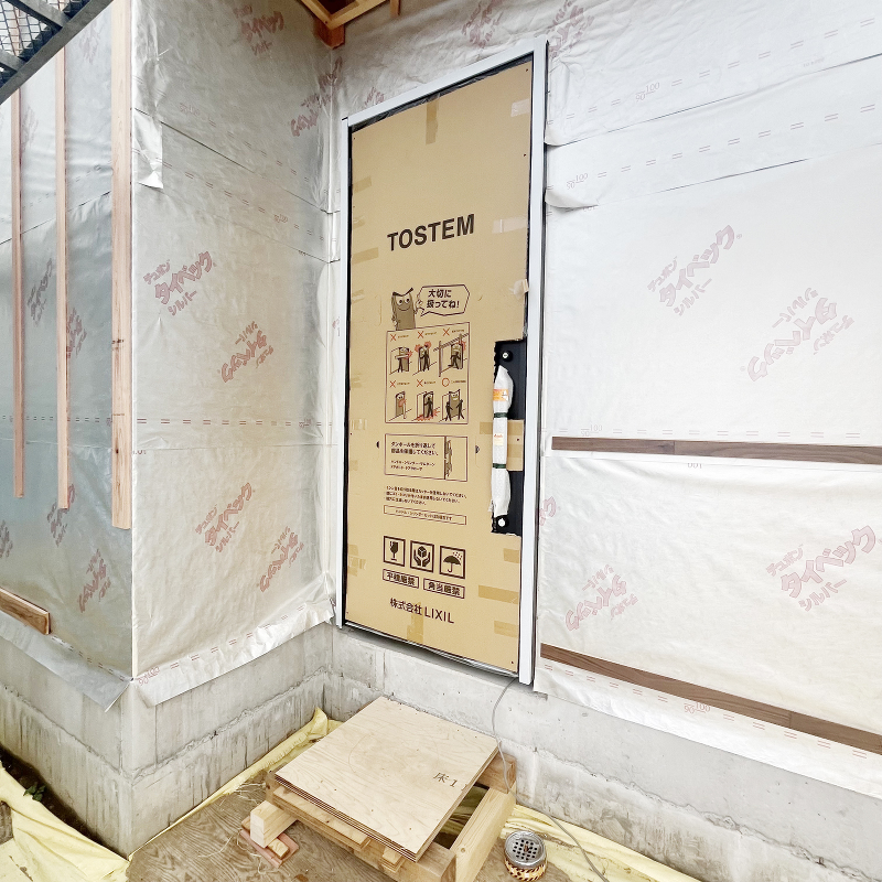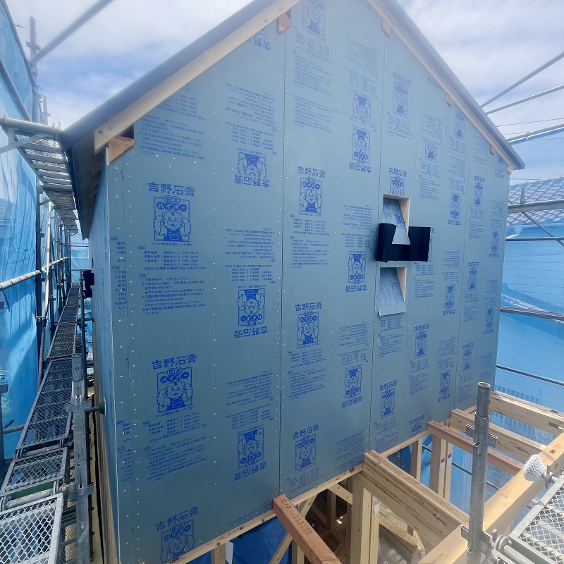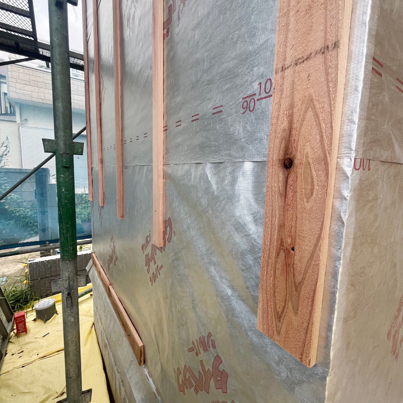 外壁工事 透湿防水シート「タイベックシルバー」が貼られました。