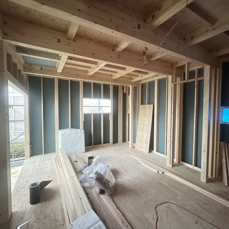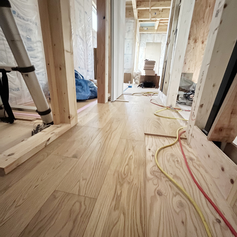 木工事 フローリング貼りが始まりました。