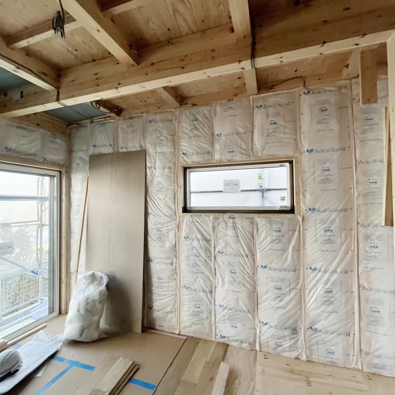 断熱材の充填が始まりました。