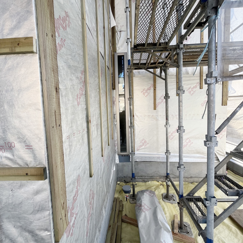 サイディング貼りが進んでいます。