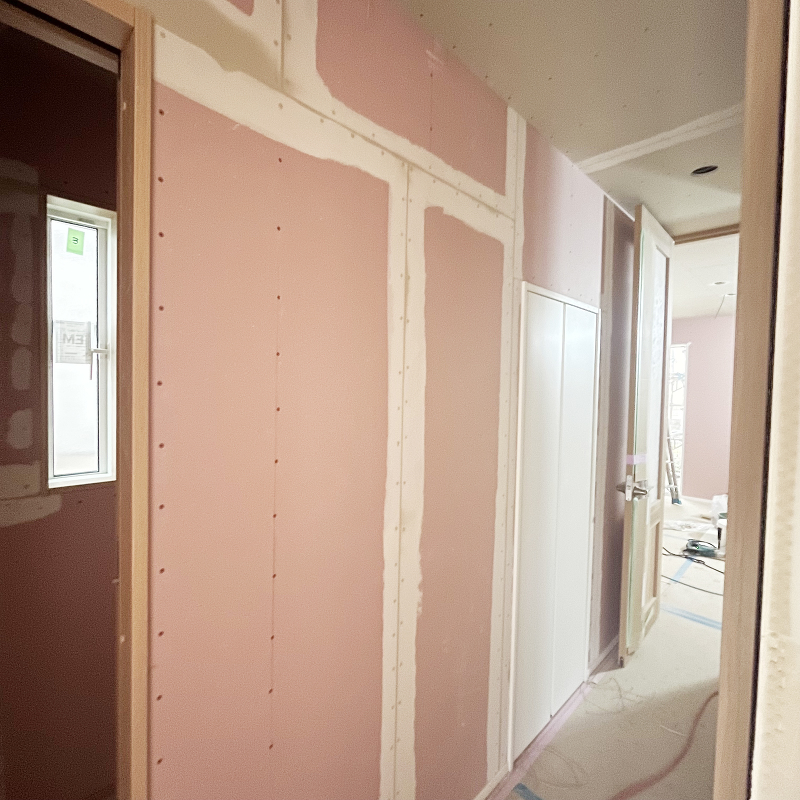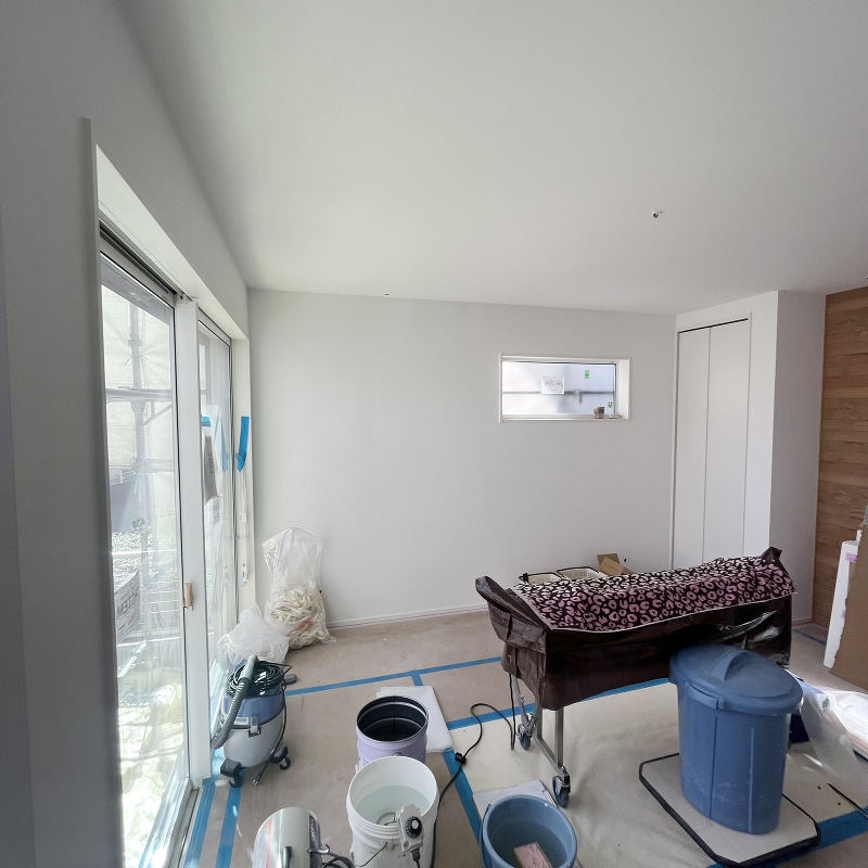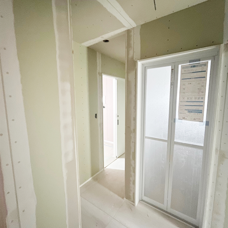 木工事 クロス貼り用パテ処理がされています。