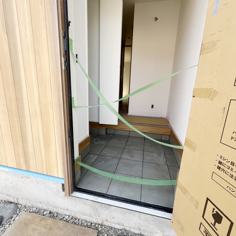 玄関タイル貼り工事完了です。