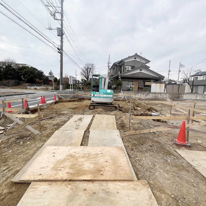 基礎工事 根切り工事・割栗石敷きが始まりました。
