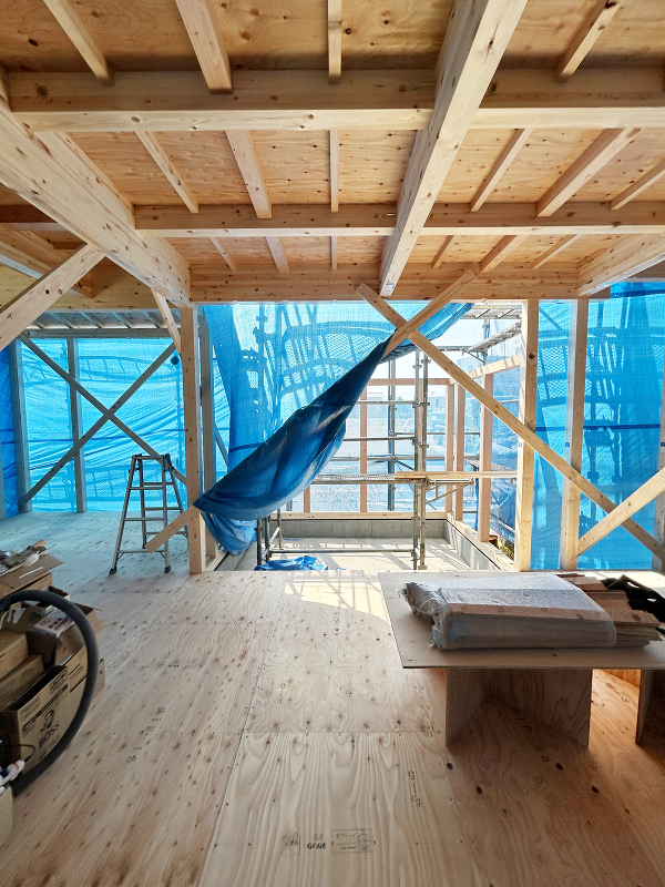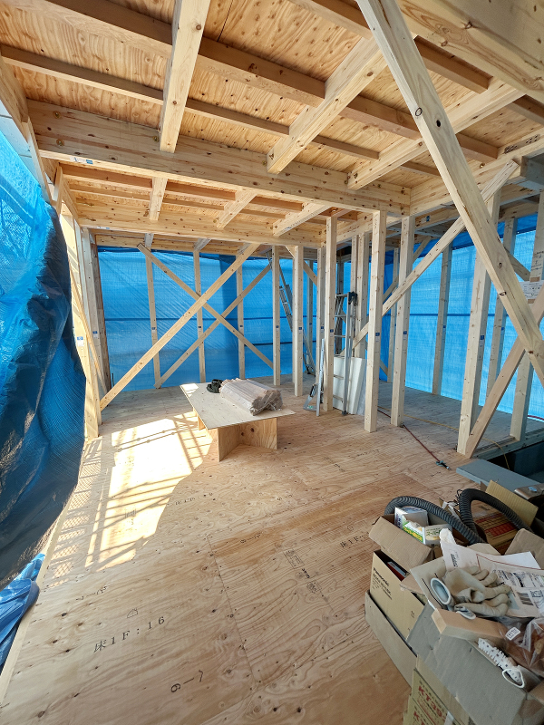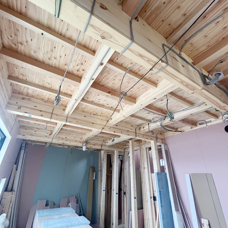 石膏ボード「ハイクリーンボード」貼りが進んでいます。