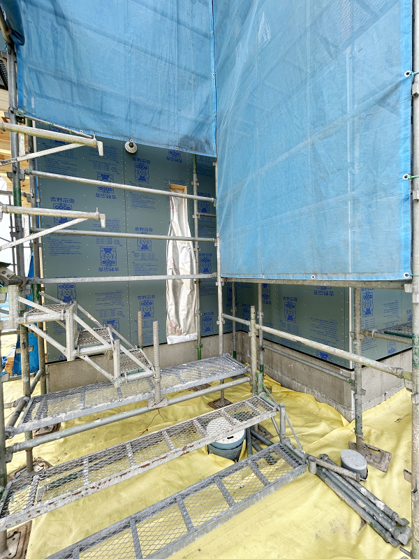 外壁工事 透湿防水シート「タイベックシルバー」が貼られました。