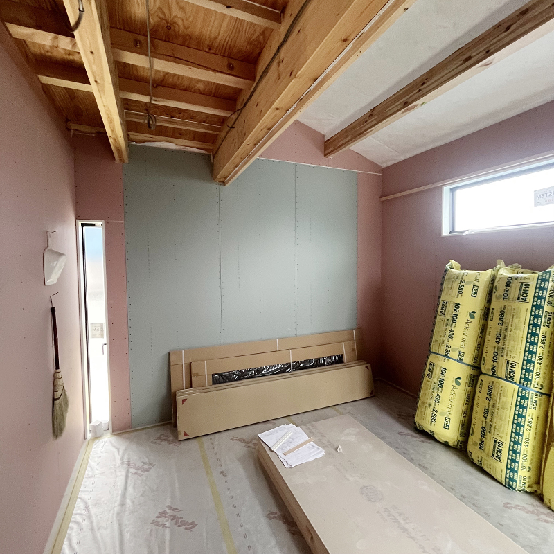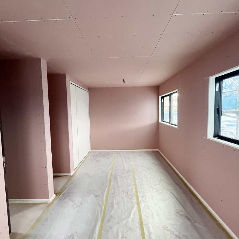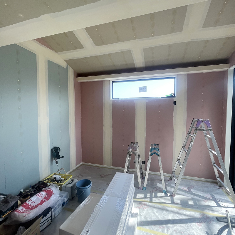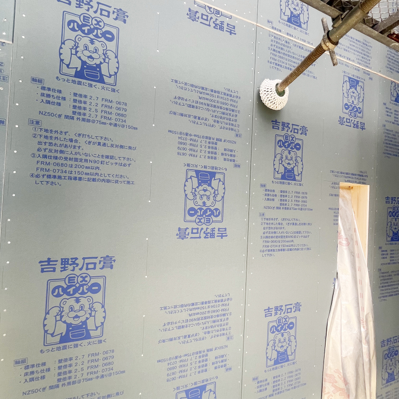 石膏ボード「ハイクリーンボード」貼りが完了しました。
