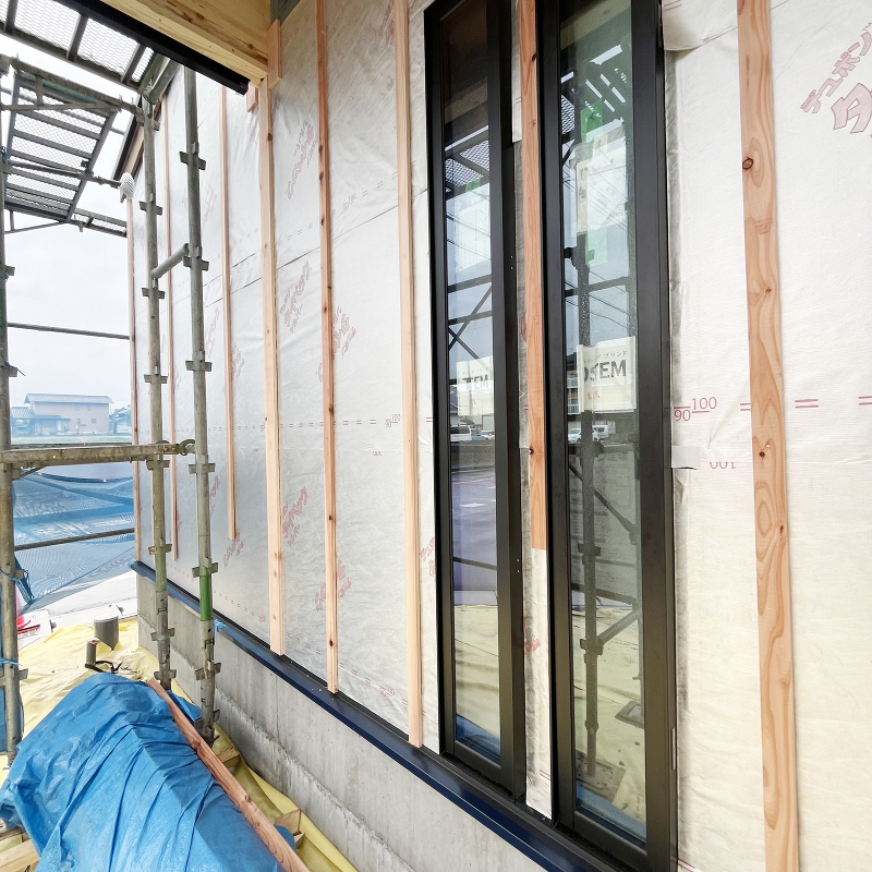 サッシが取り付けられました。