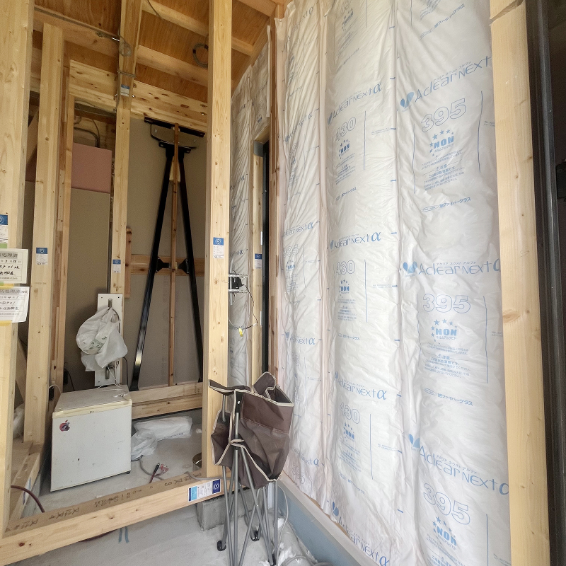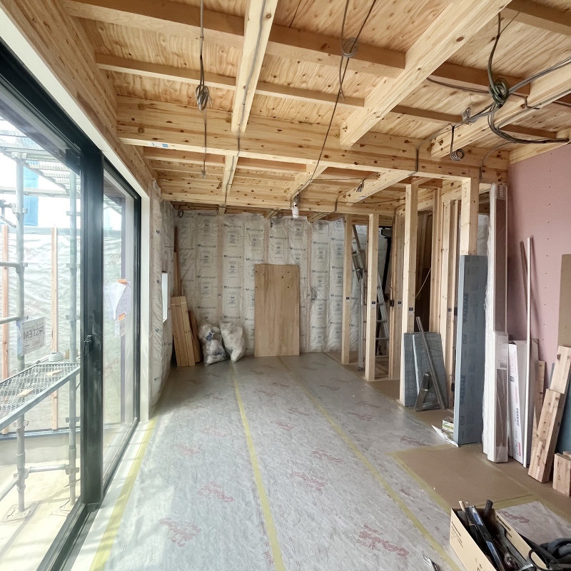 木工事 断熱材の充填が終わりました。