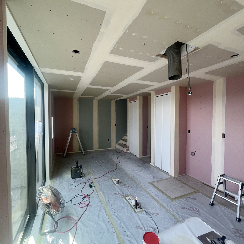 木工事 石膏ボード「ハイクリーンボード」貼りが完了しました。