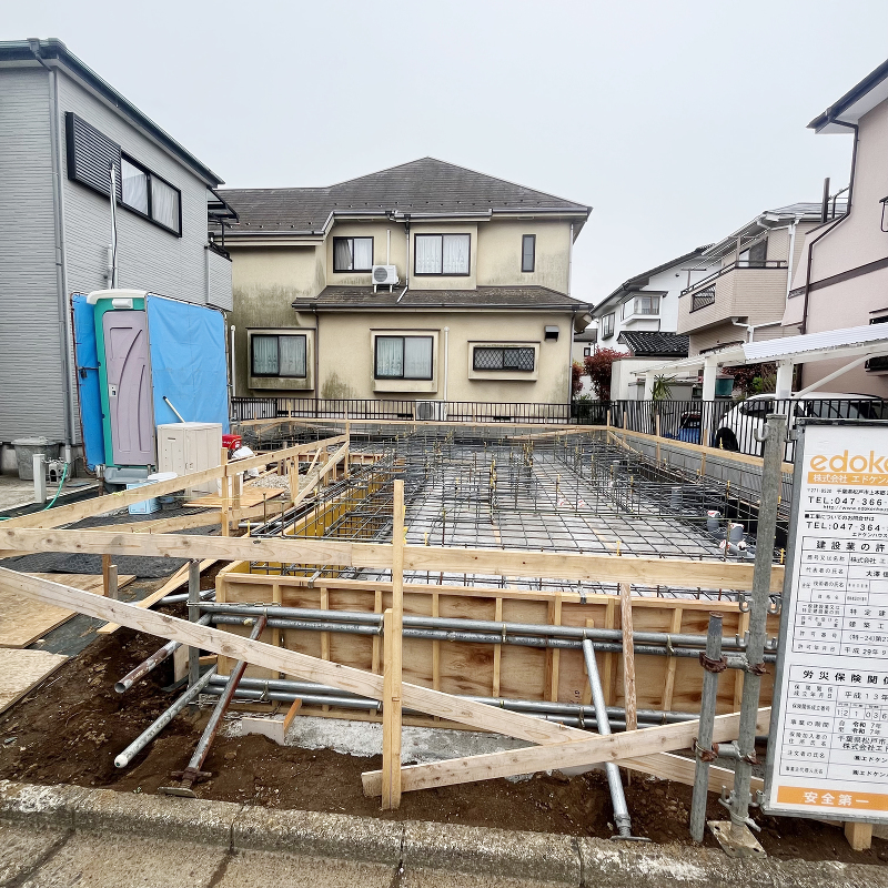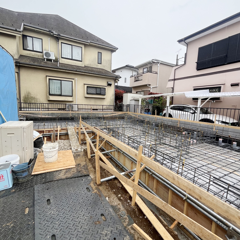 基礎工事 型枠と基礎配筋が組まれました。