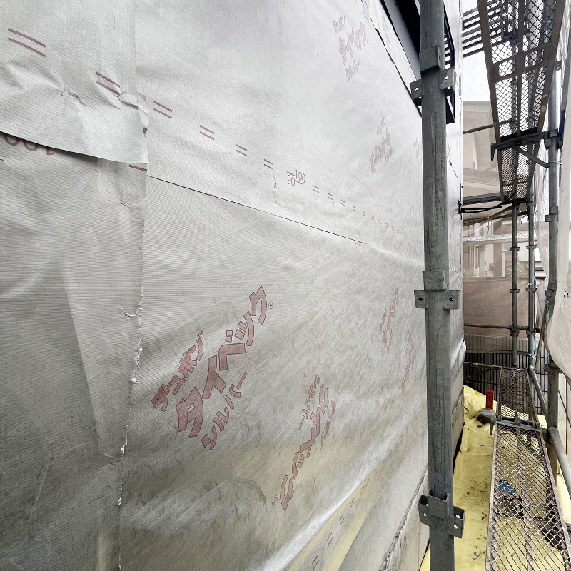 透湿防水シート「タイベックシルバー」が貼られました。