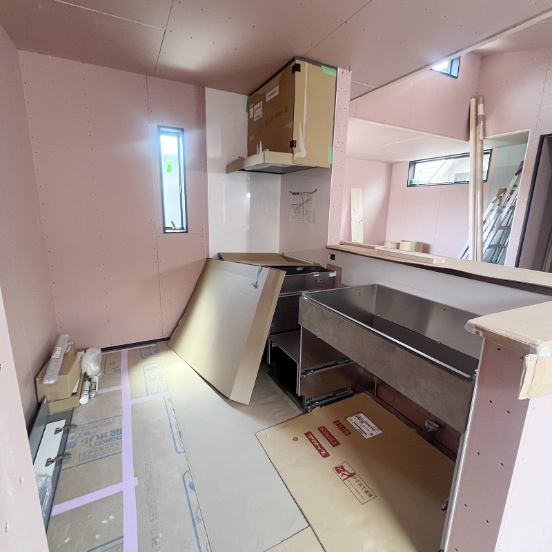 設備工事 キッチンの取り付け工事が始まりました。
