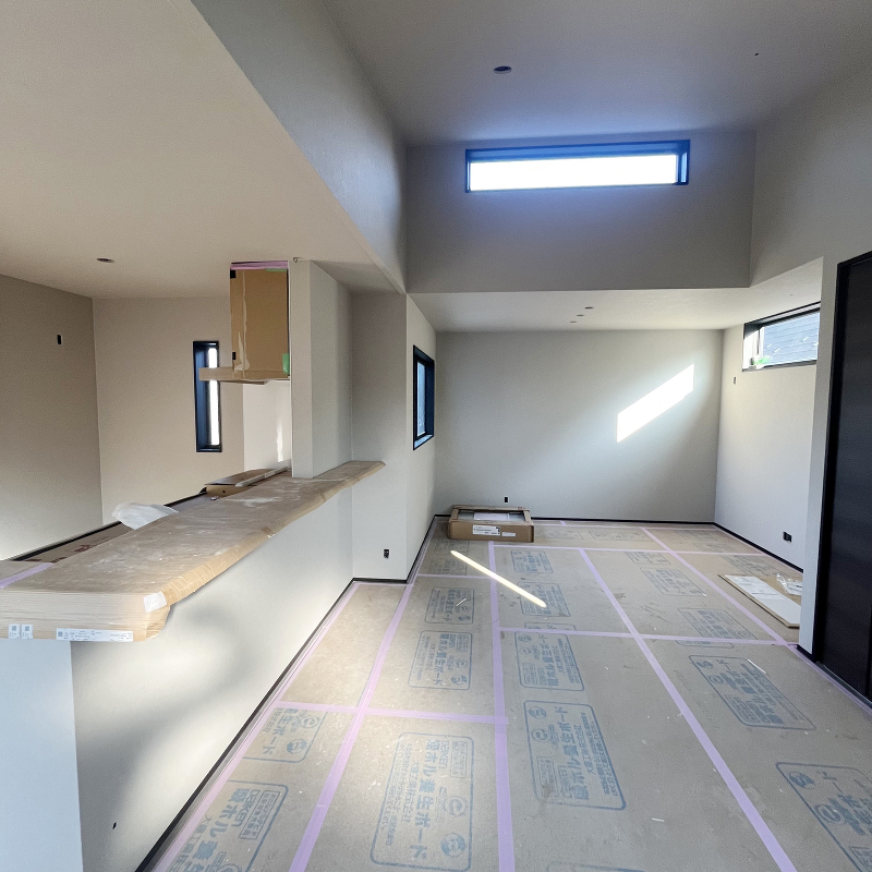 石膏ボード「ハイクリーンボード」貼りが始まりました。