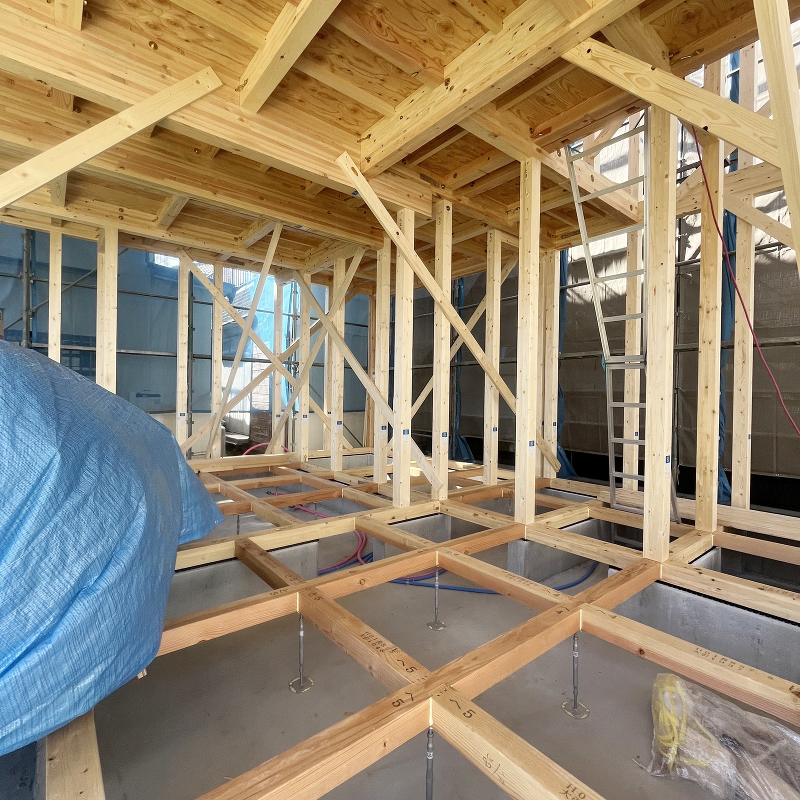木工事 1階、2階構造躯体完了です。
