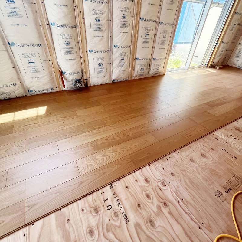 フローリング貼りが始まりました。